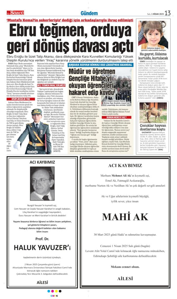01 Nisan 2025 Sözcü Ölüm İlanları | Anma Teşekkür Taziye