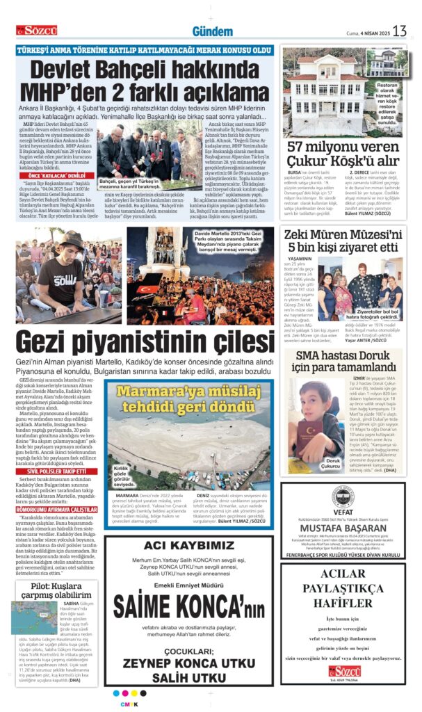 04 Nisan 2025 Sözcü Ölüm İlanları | Anma Teşekkür Taziye